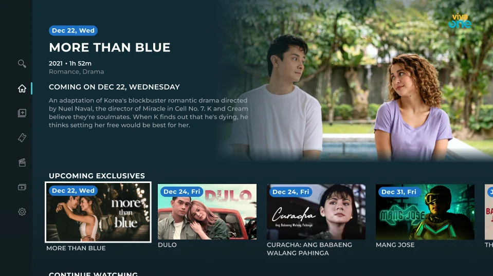 - Extensive Content Library: Access to classic Filipino movies, international hits, and exclusive Viva Originals such as More Than Blue and The Wife.